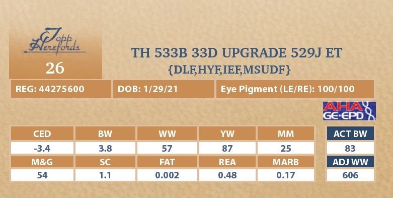bull will be located at Topp Herefords or you
