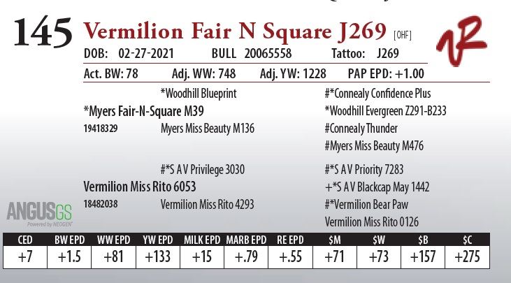 All bulls will be covered 50% by Vermilion Ranch if they are injured during their first breeding season. Breeding season is defined as the 60-day period following the first turnout of bulls.