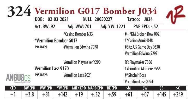 All bulls will be covered 50% by Vermilion Ranch if they are injured during their first breeding season. Breeding season is defined as the 60-day period following the first turnout of bulls.