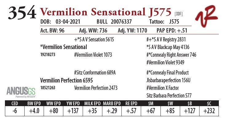 All bulls will be covered 50% by Vermilion Ranch if they are injured during their first breeding season. Breeding season is defined as the 60-day period following the first turnout of bulls.