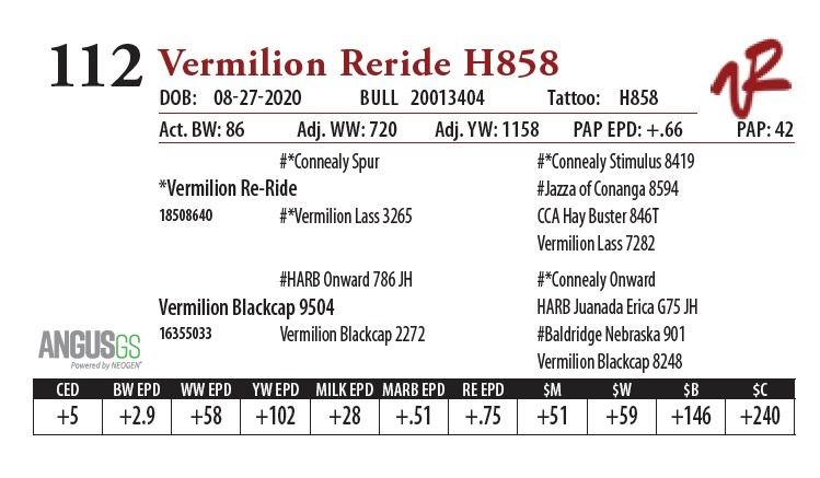 All bulls will be covered 50% by Vermilion Ranch if they are injured during their first breeding season. Breeding season is defined as the 60-day period following the first turnout of bulls.