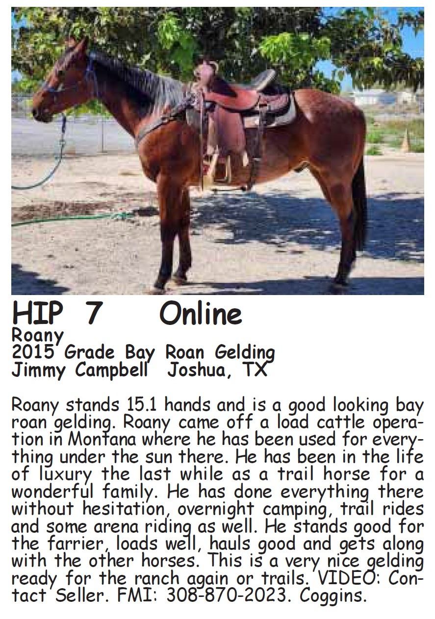 4. Horses are offered for sale according to the laws of the State of Montana, and the right to bid is reserved for all sellers in this sale.
