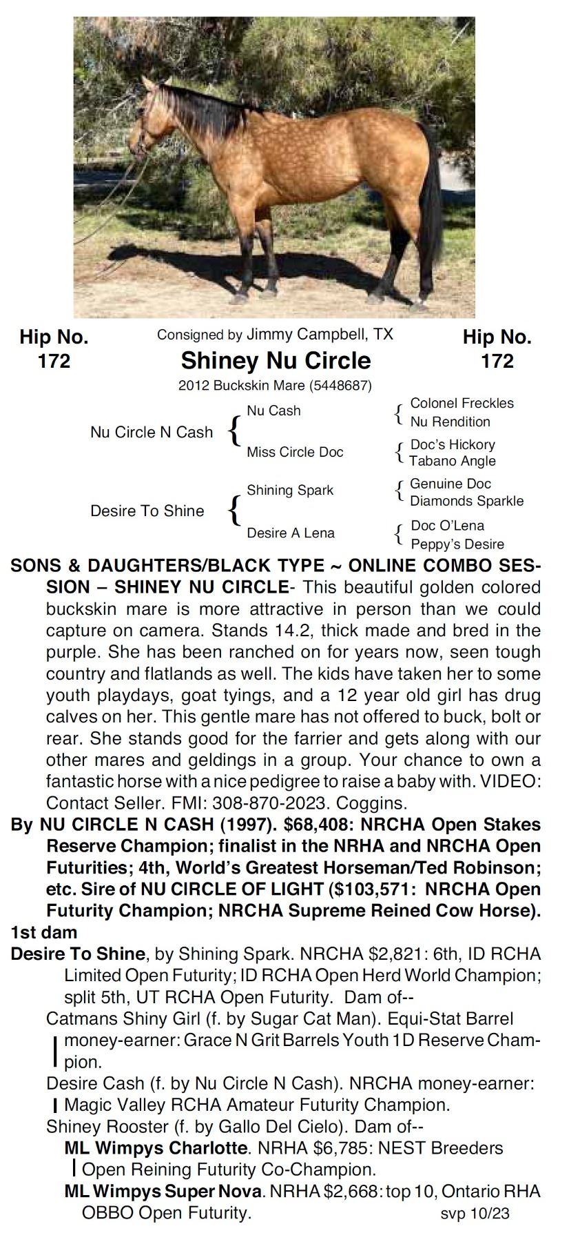 FRIDAY: OCTOBER 27 – HORSEPALACE ARENA Exit 437 on I-90 3 p.m. Indoor Performance Preview of Sale Horses! Barrels, Poles, Cutting, Saddle/Ride/Reiners, Rope Horses