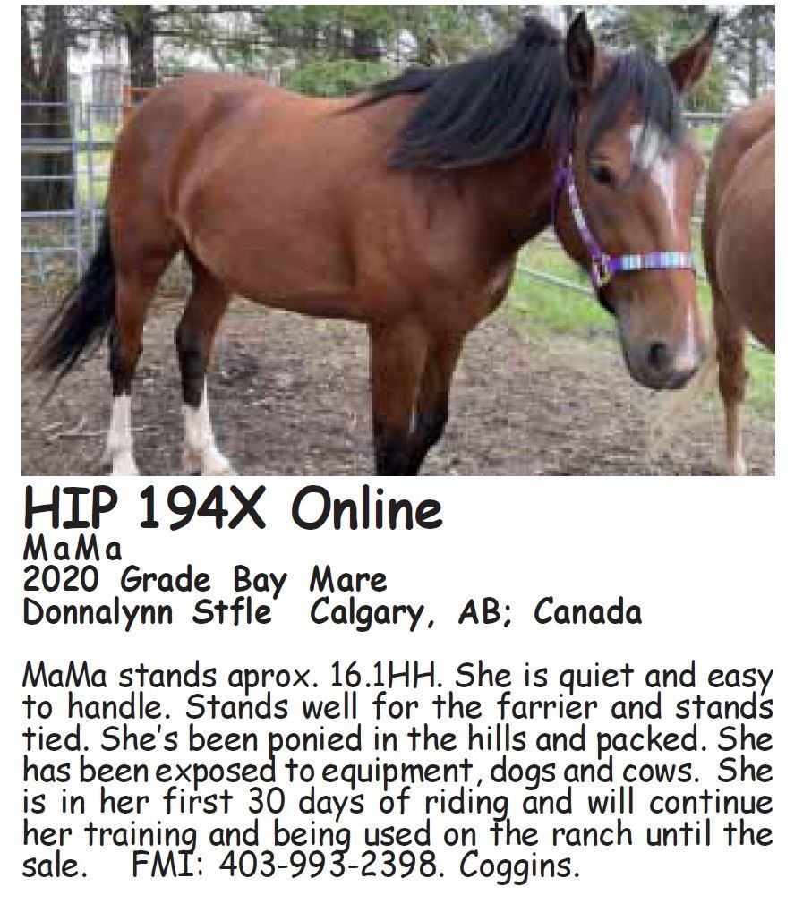 ALL OCTOBER 27-28 SALE HORSES WILL BE AUCTIONED LIVE AT BILLINGS LIVESTOCK – Internet bidding also available for Online/ ShowCase Internet Sale Session horses offered in this sale