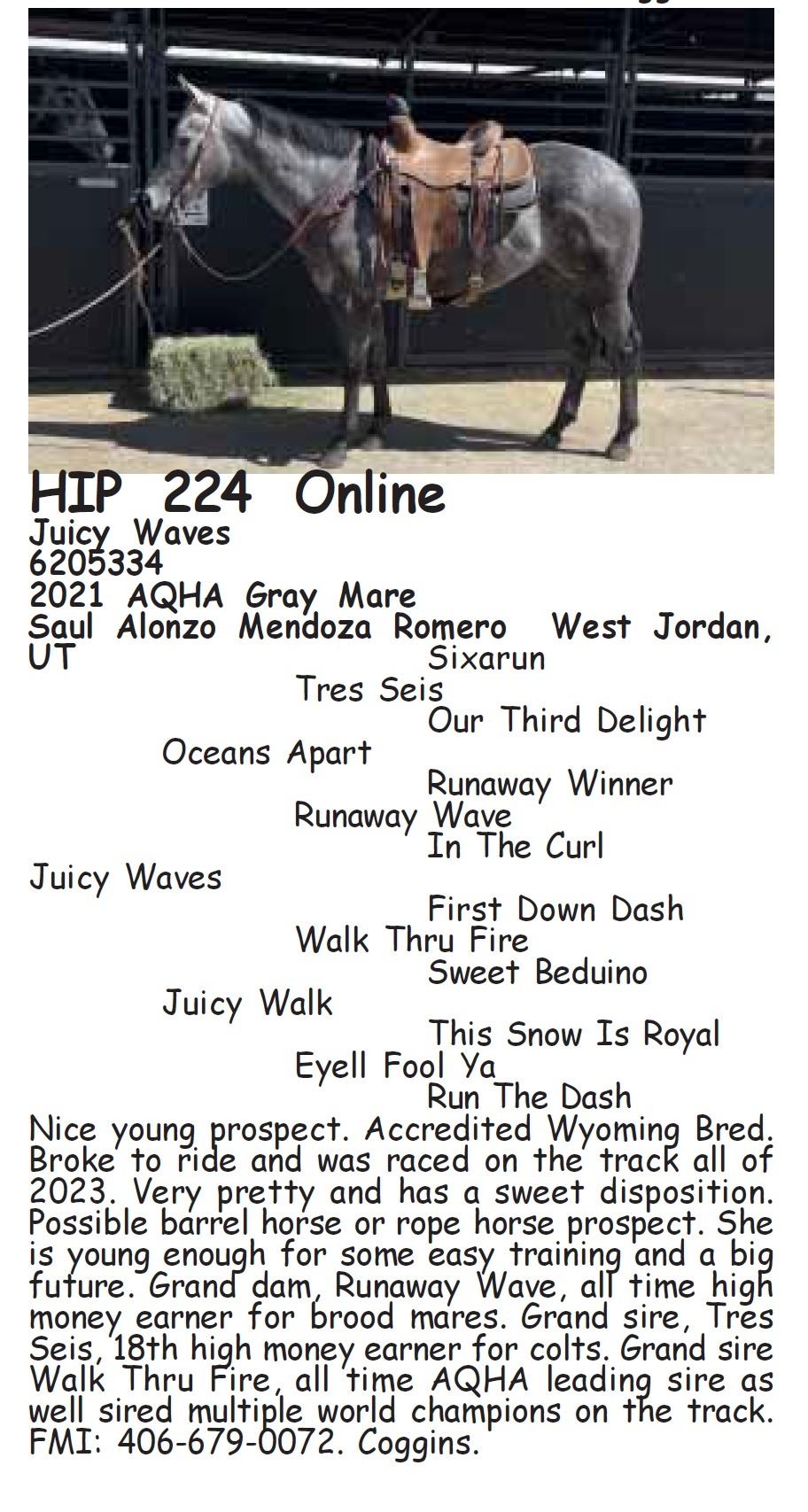 ALL OCTOBER 27-28 SALE HORSES WILL BE AUCTIONED LIVE AT BILLINGS LIVESTOCK – Internet bidding also available for Online/ ShowCase Internet Sale Session horses offered in this sale
