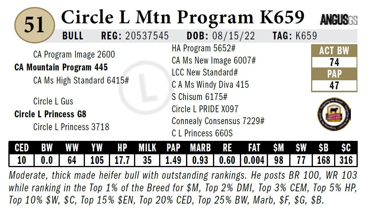 All persons who attend this sale do so at their own risk, legal or otherwise. Circle L Angus assumes no liability for property loss or accident that may occur.