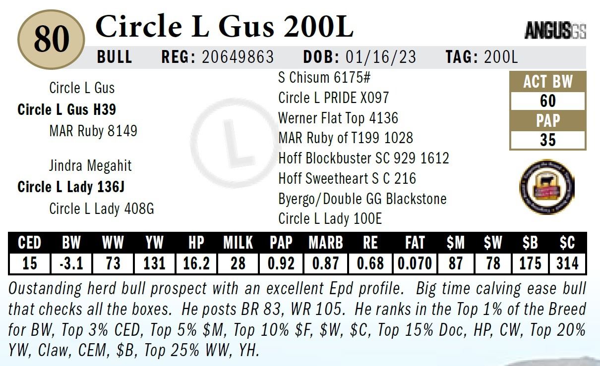 All persons who attend this sale do so at their own risk, legal or otherwise. Circle L Angus assumes no liability for property loss or accident that may occur.