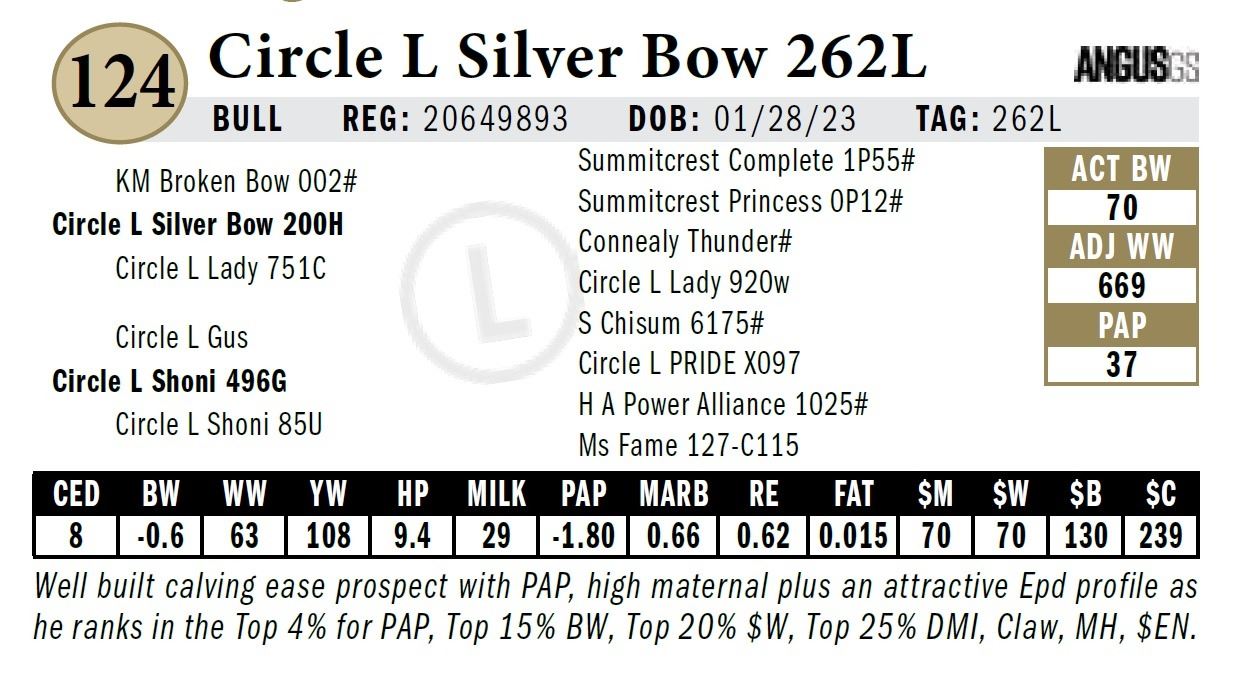 All persons who attend this sale do so at their own risk, legal or otherwise. Circle L Angus assumes no liability for property loss or accident that may occur.