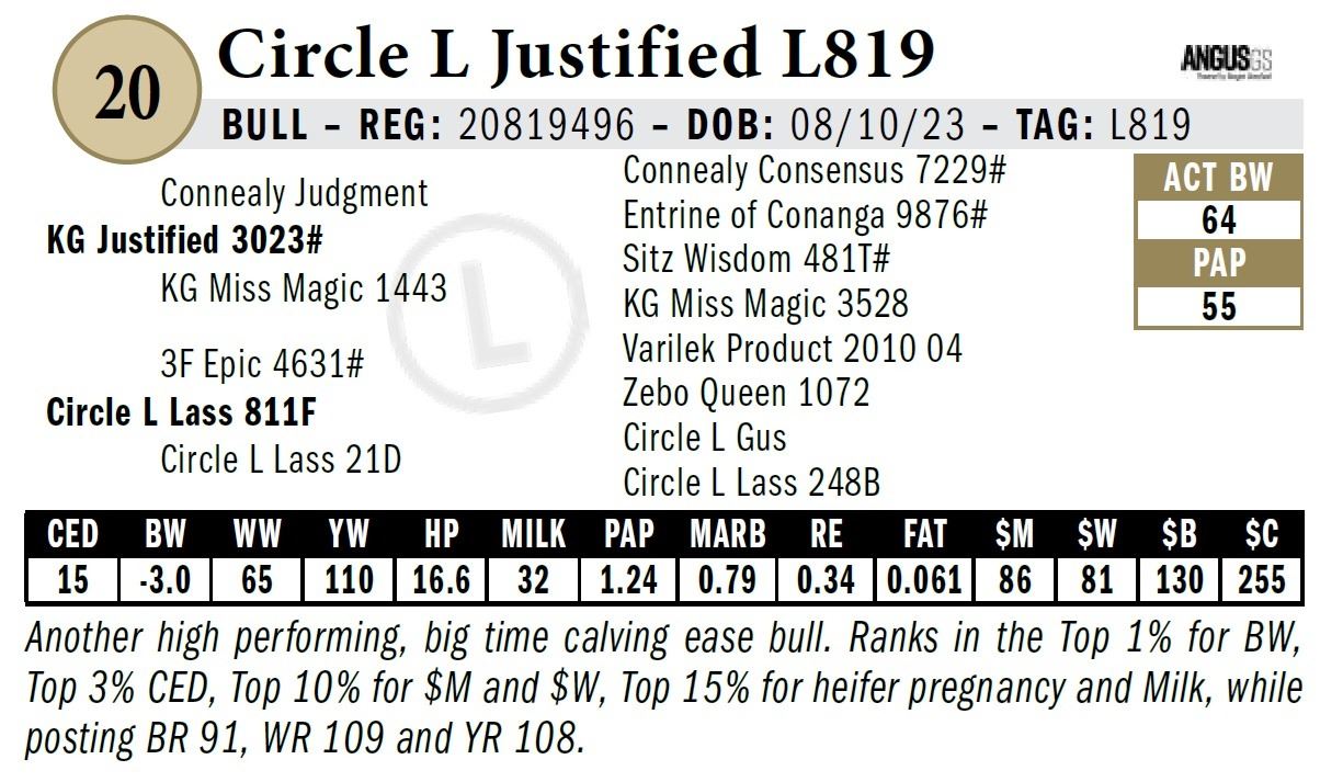 All persons who attend this sale do so at their own risk, legal or otherwise. Circle L Angus assumes no liability for property loss or accident that may occur.