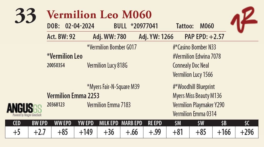 All bulls will be covered 50% by Vermilion Ranch if they are injured during their first breeding season. Breeding season is defined as the 60-day period following the first turnout of bulls.