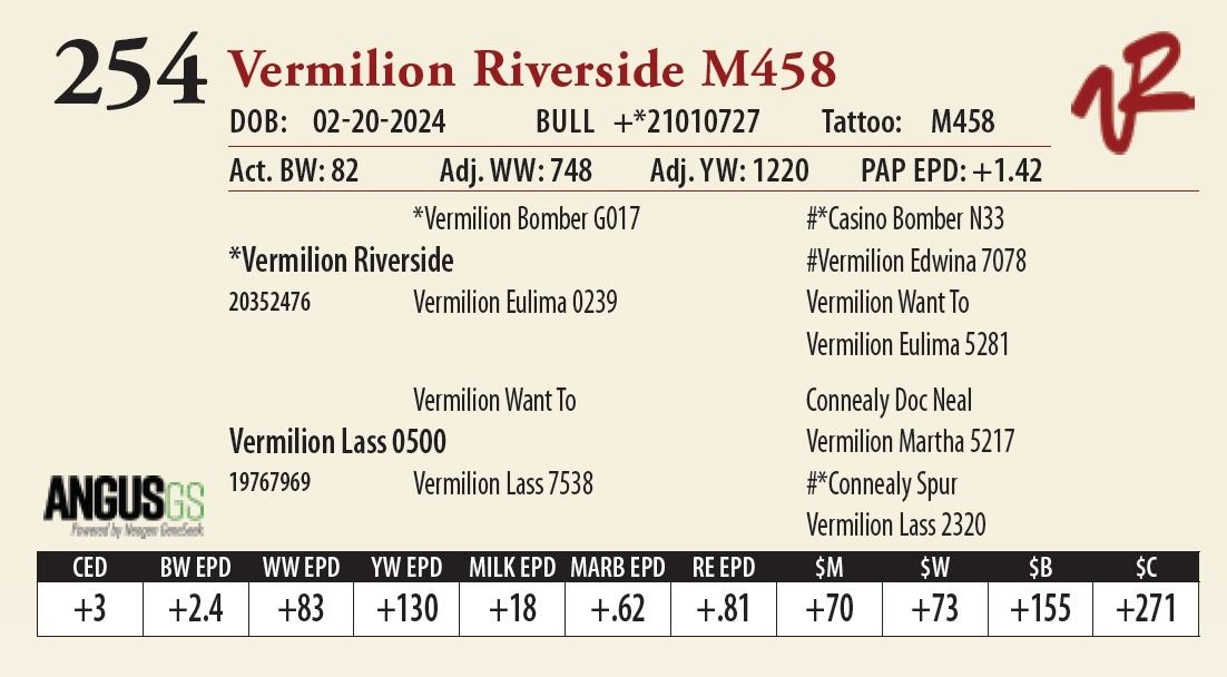 All bulls will be covered 50% by Vermilion Ranch if they are injured during their first breeding season. Breeding season is defined as the 60-day period following the first turnout of bulls.