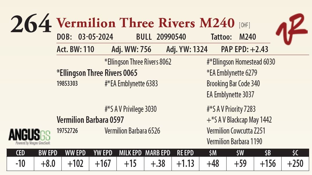 All bulls will be covered 50% by Vermilion Ranch if they are injured during their first breeding season. Breeding season is defined as the 60-day period following the first turnout of bulls.