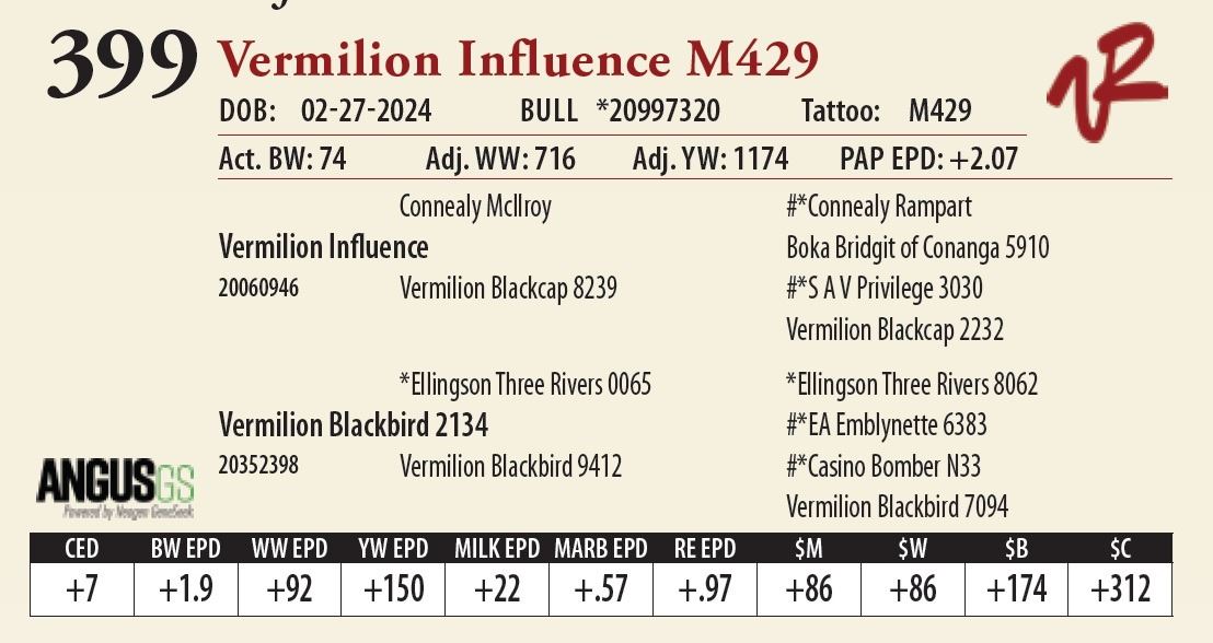 All bulls will be covered 50% by Vermilion Ranch if they are injured during their first breeding season. Breeding season is defined as the 60-day period following the first turnout of bulls.