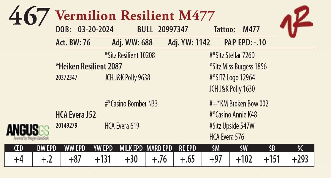 All bulls will be covered 50% by Vermilion Ranch if they are injured during their first breeding season. Breeding season is defined as the 60-day period following the first turnout of bulls.