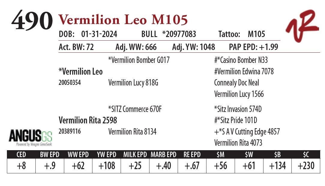 All bulls will be covered 50% by Vermilion Ranch if they are injured during their first breeding season. Breeding season is defined as the 60-day period following the first turnout of bulls.