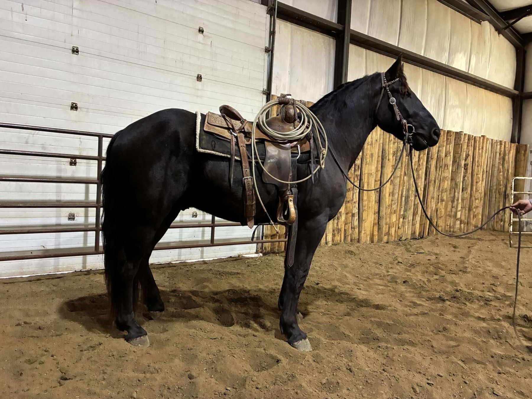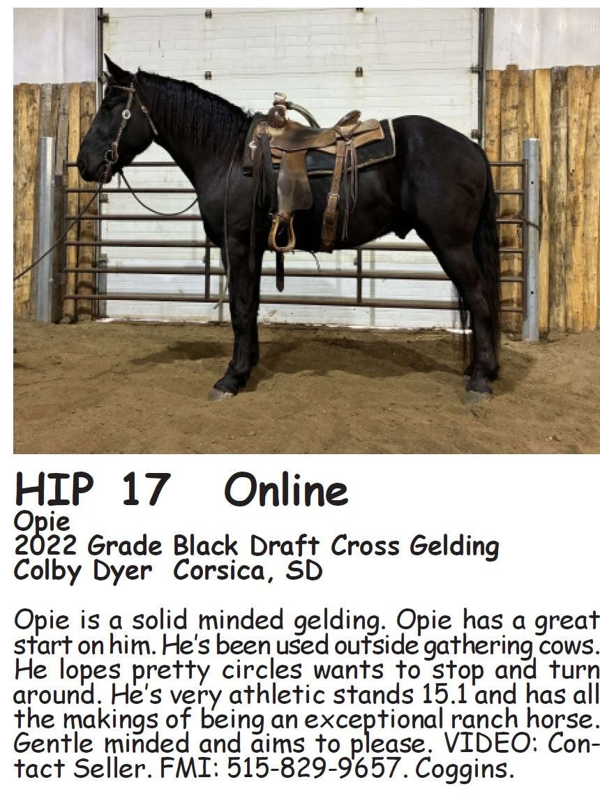 Opie is a solid minded gelding. Opie has a great start on him. He’s been used outside gathering cows. He lopes pretty circles wants to stop and turn around. He’s very athletic stands 15.1 and has all the makings of being an exceptional ranch horse. Gentle minded and aims to please. VIDEO: Contact Seller. FMI: 515-829-9657. Coggins.