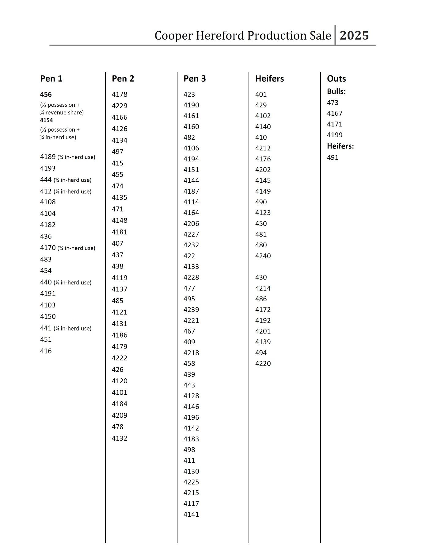 All persons who attend this sale do so at their own risk, legal or otherwise. Cooper Hereford Ranch assumes no liability for property loss or accident that may occur.