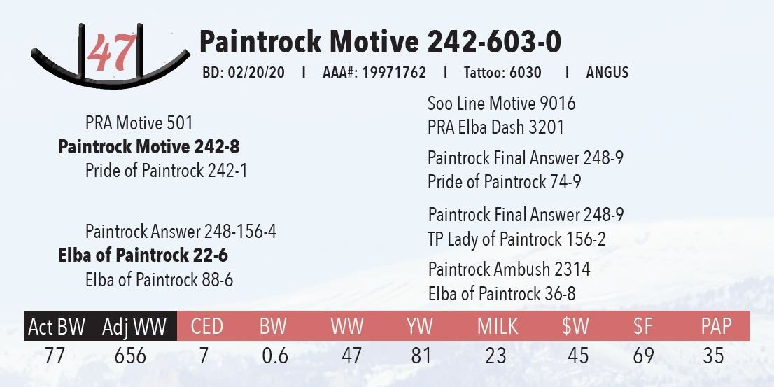 All persons who attend this sale do so at their own risk, legal or otherwise. Paint Rock Angus assumes no liability for property loss or accident that may occur.