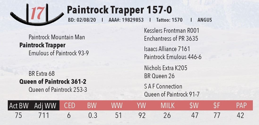 All persons who attend this sale do so at their own risk, legal or otherwise. Paint Rock Angus assumes no liability for property loss or accident that may occur.