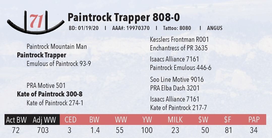 All persons who attend this sale do so at their own risk, legal or otherwise. Paint Rock Angus assumes no liability for property loss or accident that may occur.