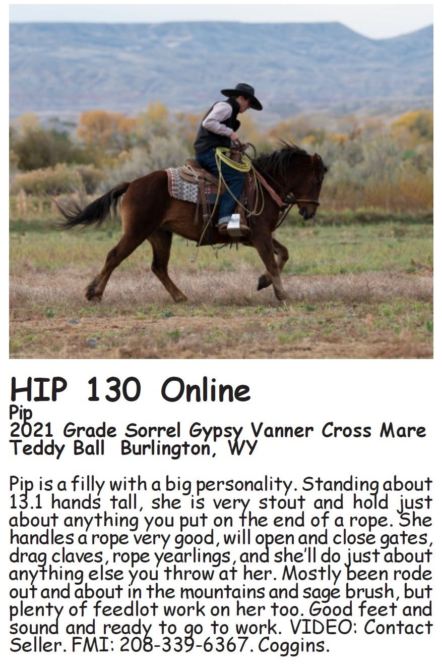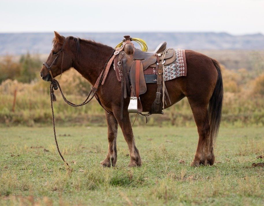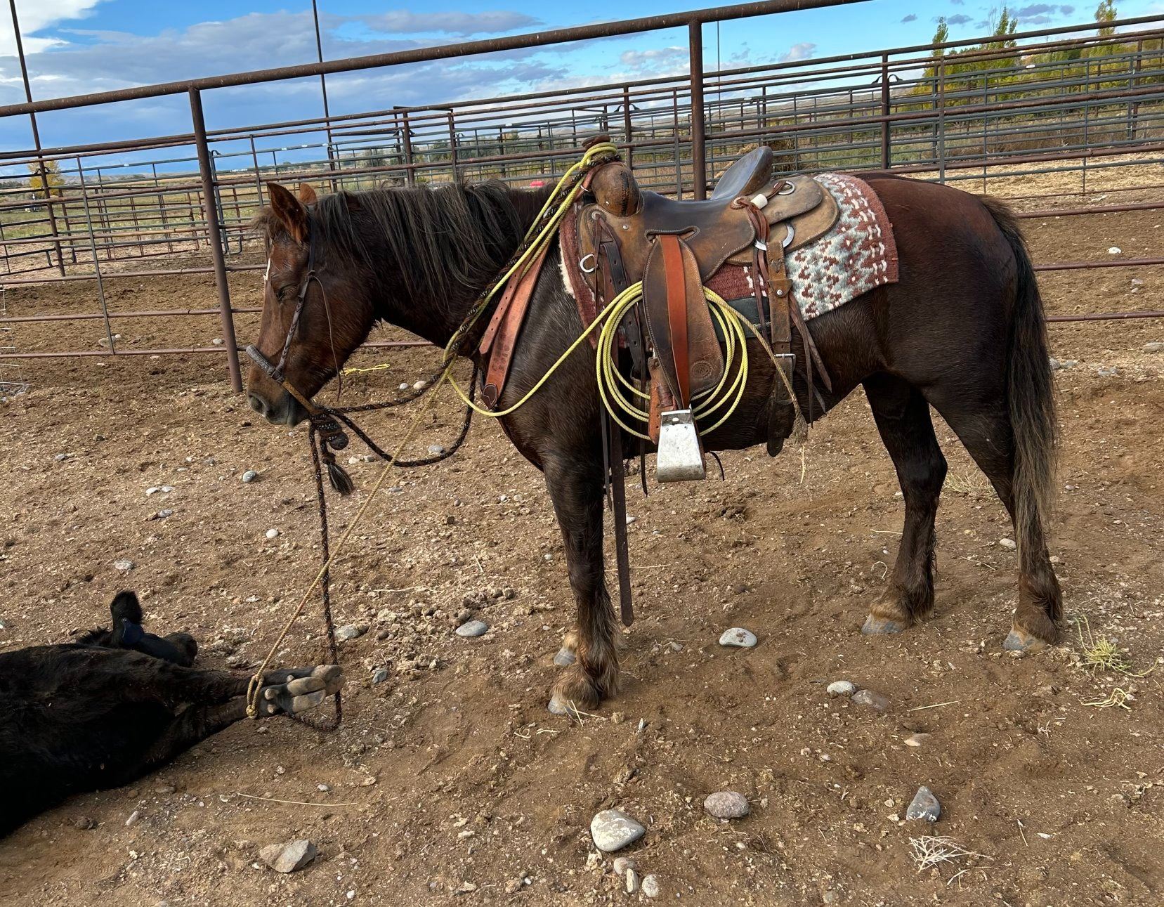 Pip is a filly with a big personality. Standing about 13.1 hands tall, she is very stout and hold just about anything you put on the end of a rope. She handles a rope very good, will open and close gates, drag claves, rope yearlings, and she’ll do just about anything else you throw at her. Mostly been rode out and about in the mountains and sage brush, but plenty of feedlot work on her too. Good feet and sound and ready to go to work. VIDEO: Contact Seller. FMI: 208-339-6367. Coggins.