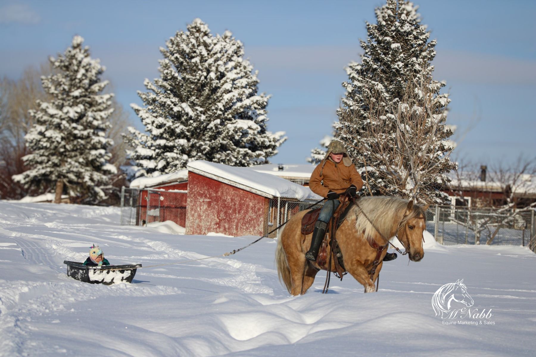 Pudding is a gorgeous golden palomino that I have done everything with from dragging my little sister in the sled in the snow, to spring branding, to fall gathering. I have both drug and tracked the roping dummy with him. He has seen miles in the mountains, sure footed and solid. He goes where he’s pointed, crosses the creeks, goes through the brush and will follow a trail. You can give him time off and he’s the same every time. Pudding is super sweet, easy to catch and loves attention. Pudding will ride out alone or is happy in any position in a group. In the arena he knows his leads, lopes nice circles and has a good stop. Pudding is smooth in all gaits. He gets along well in a mixed herd. He is good with all types of livestock including pigs, llamas, goats and poultry. He is good for the farrier. Loads in and backs out of the trailer, hauls well. He is up to date on vaccinations and age verified by the vet. 13.3 Hands tall, 7yrs old. PPEs welcome at your expense. We will hold him up to 10 days for free and we are glad to help arrange transportation.