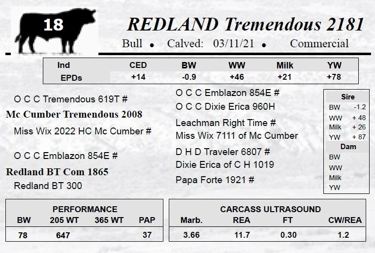 All bulls selling for $2,500 or more will be covered 50% by Redland Angus if they are injured during their first breeding season.