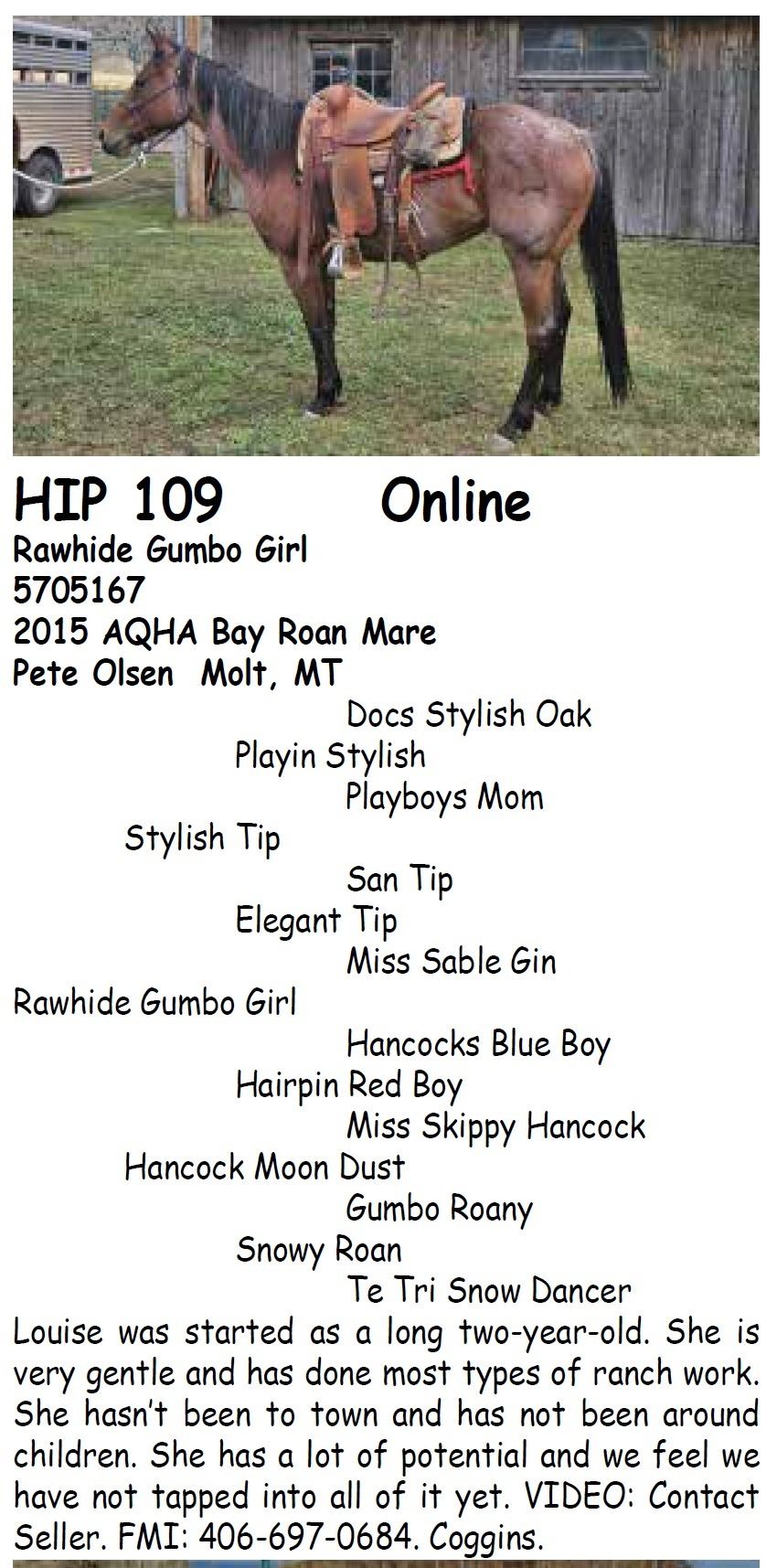 ALL AUGUST 26 SALE HORSES WILL BE AUCTIONED LIVE AT BILLINGS LIVESTOCK – Internet bidding also available for Online/ ShowCase Internet Sale Session horses offered in this sale