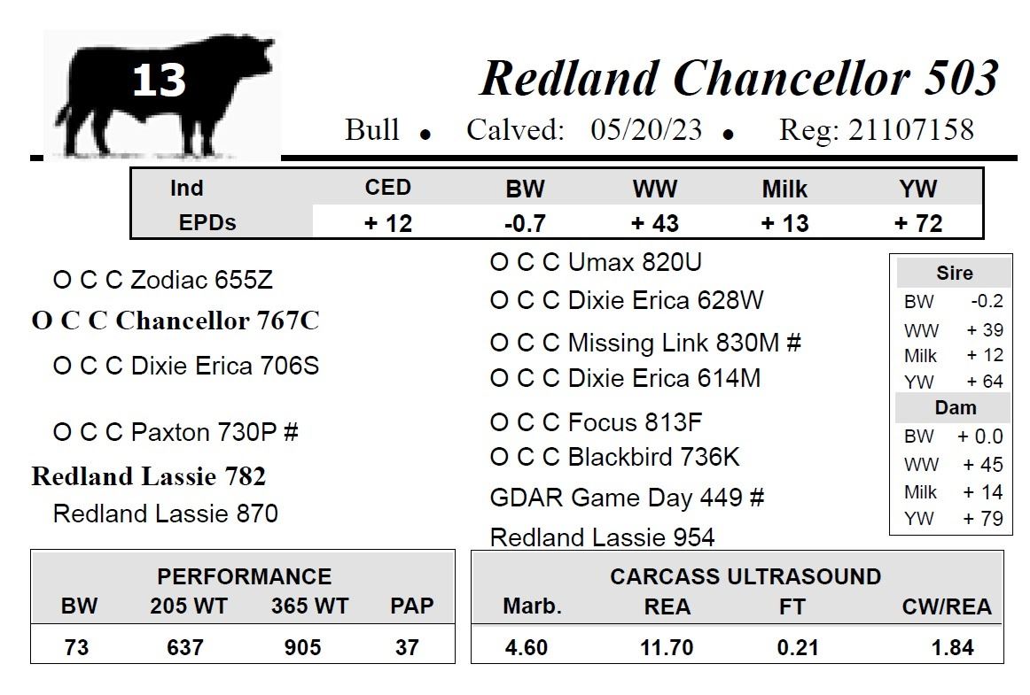 All bulls selling for $2,500 or more will be covered 50% by Redland Angus if they are injured during their first breeding season.