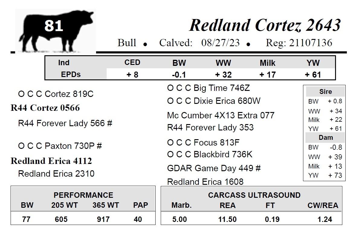 All bulls selling for $2,500 or more will be covered 50% by Redland Angus if they are injured during their first breeding season.