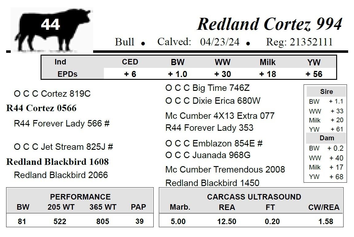 All bulls selling for $2,500 or more will be covered 50% by Redland Angus if they are injured during their first breeding season.
