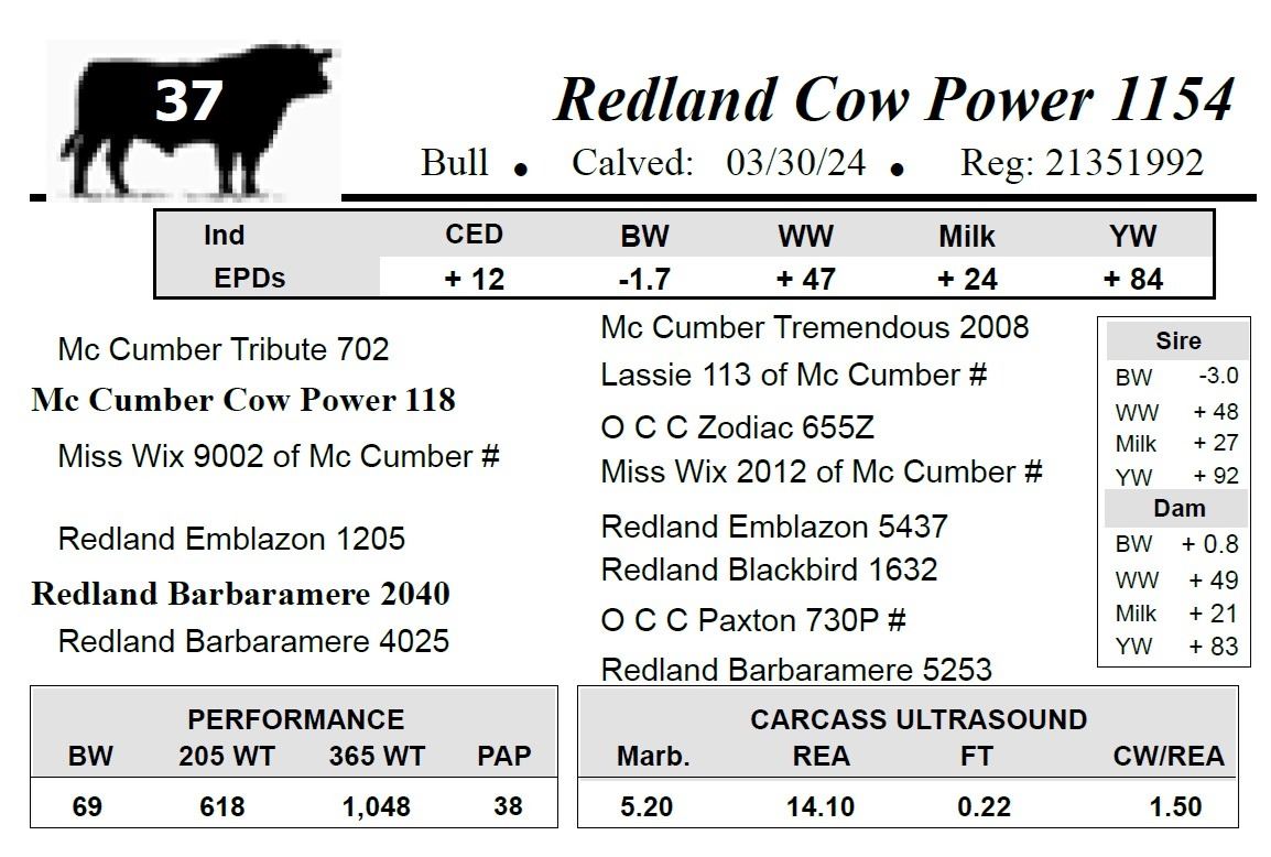 All bulls selling for $2,500 or more will be covered 50% by Redland Angus if they are injured during their first breeding season.