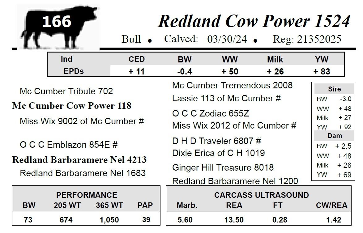 All bulls selling for $2,500 or more will be covered 50% by Redland Angus if they are injured during their first breeding season.