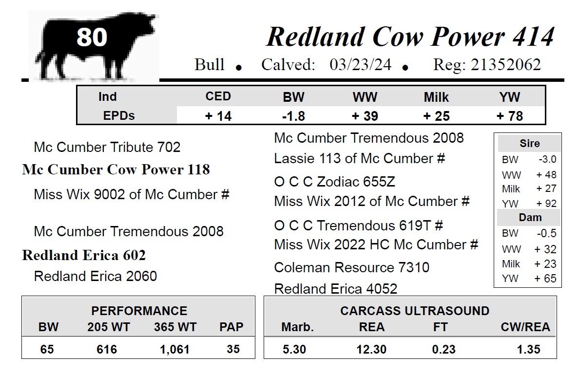 All bulls selling for $2,500 or more will be covered 50% by Redland Angus if they are injured during their first breeding season.