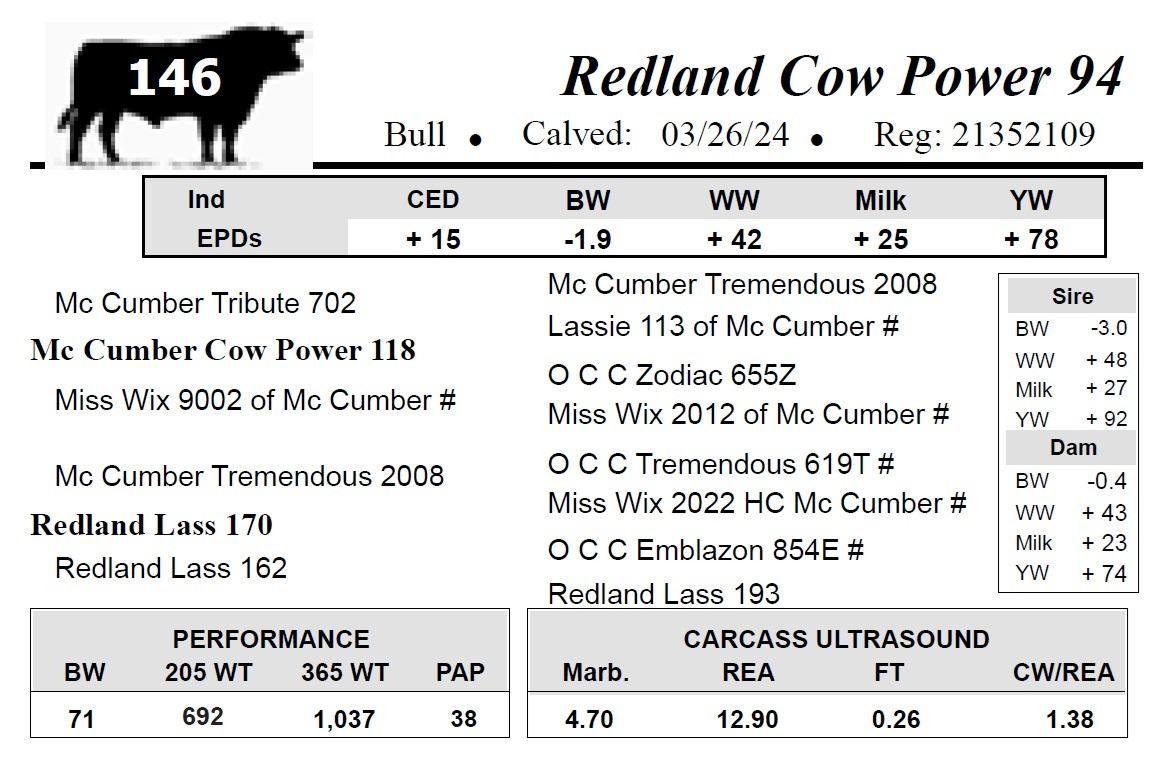All bulls selling for $2,500 or more will be covered 50% by Redland Angus if they are injured during their first breeding season.