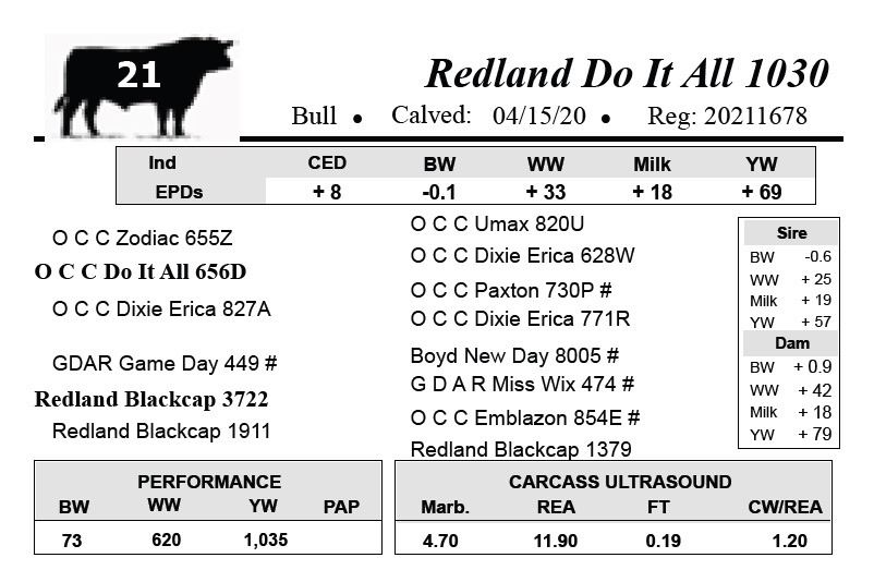 All bulls selling for $2,500 or more will be covered 50% by Redland Angus if they are injured during their first breeding season.