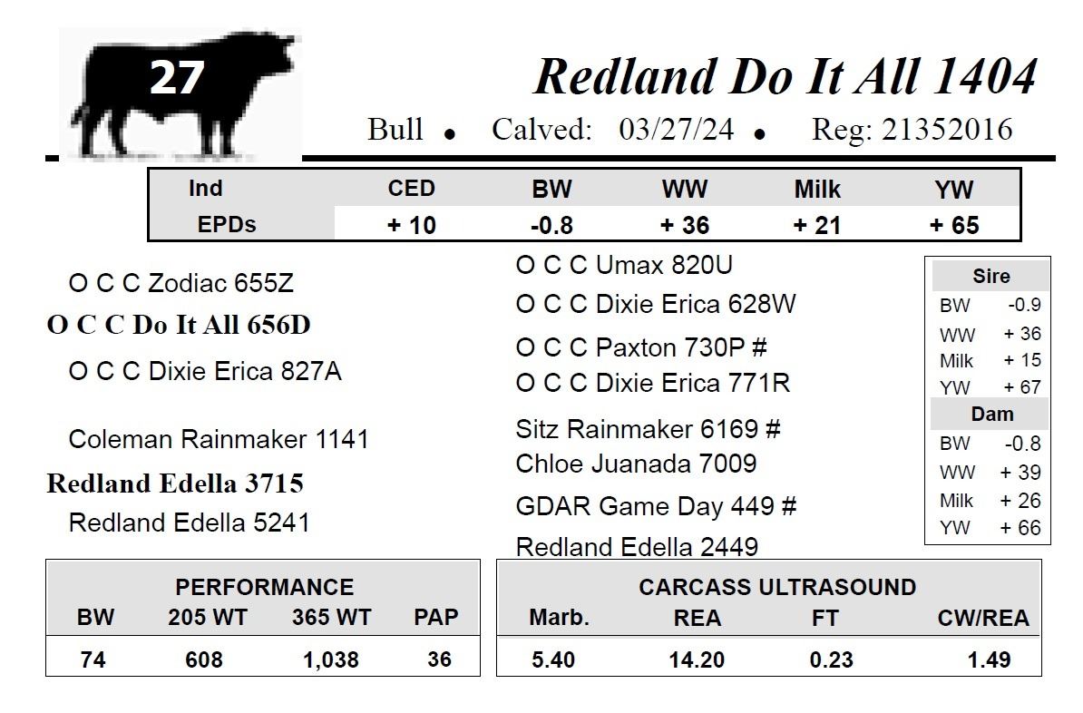 All bulls selling for $2,500 or more will be covered 50% by Redland Angus if they are injured during their first breeding season.