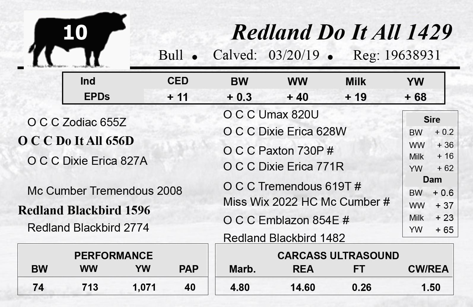 All bulls selling for $2,500 or more will be covered 50% by Redland Angus if they are injured during their first breeding season.