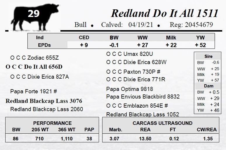 All bulls selling for $2,500 or more will be covered 50% by Redland Angus if they are injured during their first breeding season.