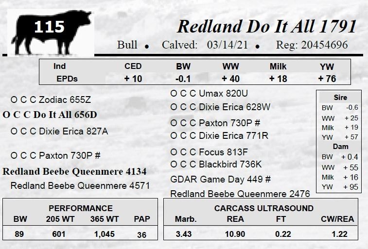 All bulls selling for $2,500 or more will be covered 50% by Redland Angus if they are injured during their first breeding season.