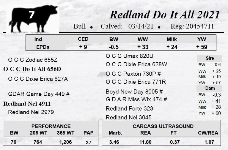 All bulls selling for $2,500 or more will be covered 50% by Redland Angus if they are injured during their first breeding season.