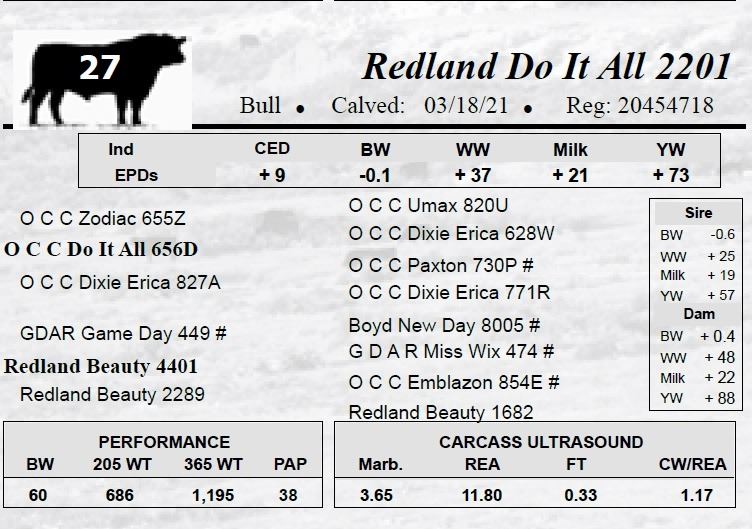 All bulls selling for $2,500 or more will be covered 50% by Redland Angus if they are injured during their first breeding season.