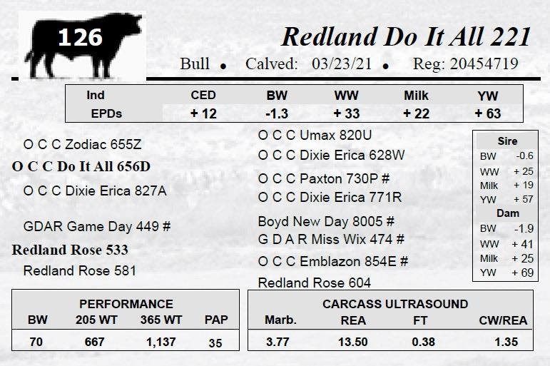All bulls selling for $2,500 or more will be covered 50% by Redland Angus if they are injured during their first breeding season.