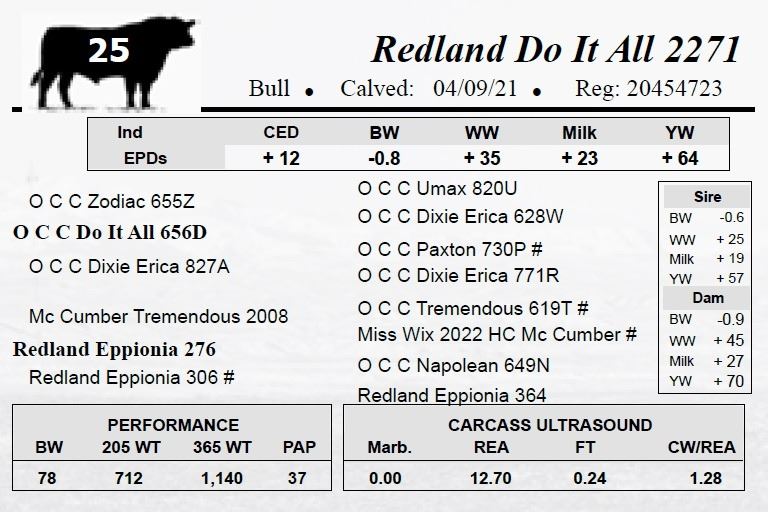 All bulls selling for $2,500 or more will be covered 50% by Redland Angus if they are injured during their first breeding season.