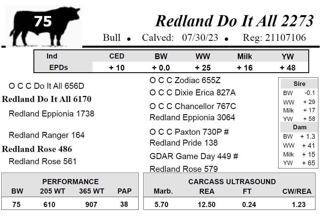 All bulls selling for $2,500 or more will be covered 50% by Redland Angus if they are injured during their first breeding season.