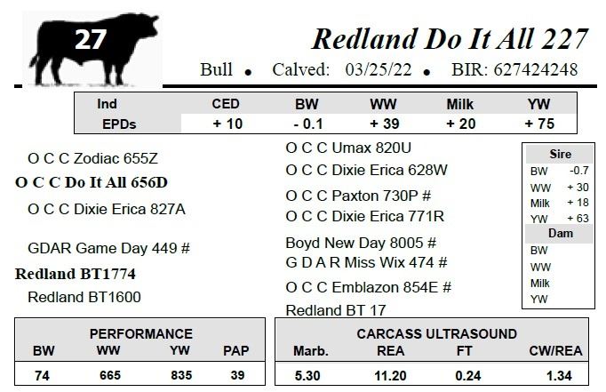 All bulls selling for $2,500 or more will be covered 50% by Redland Angus if they are injured during their first breeding season.