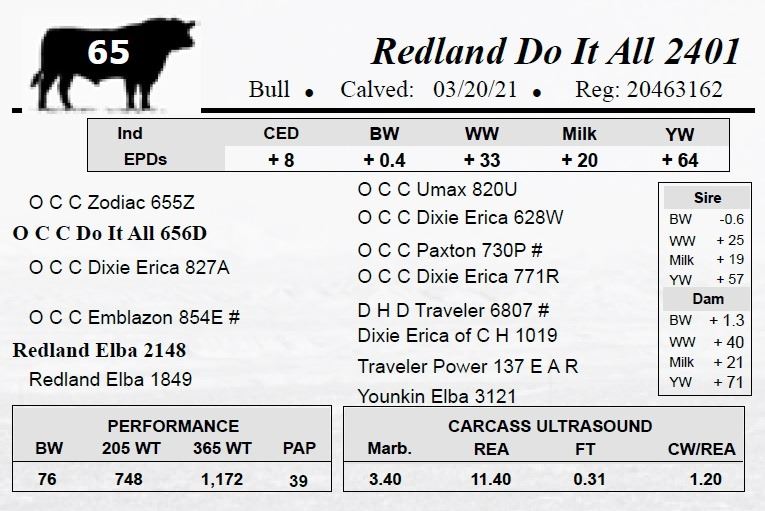 All bulls selling for $2,500 or more will be covered 50% by Redland Angus if they are injured during their first breeding season.