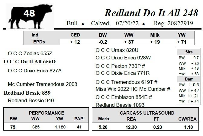 All bulls selling for $2,500 or more will be covered 50% by Redland Angus if they are injured during their first breeding season.