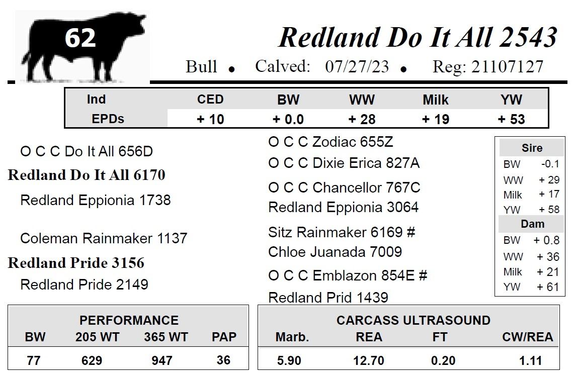 All bulls selling for $2,500 or more will be covered 50% by Redland Angus if they are injured during their first breeding season.