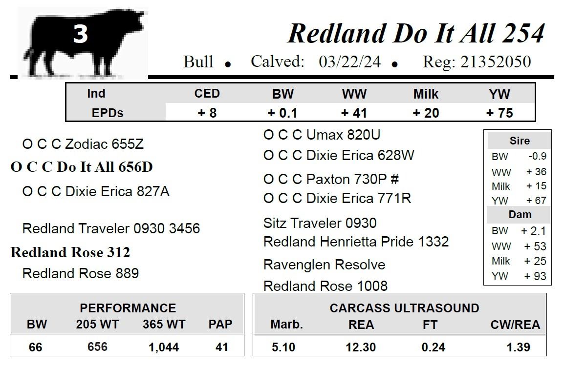 All bulls selling for $2,500 or more will be covered 50% by Redland Angus if they are injured during their first breeding season.